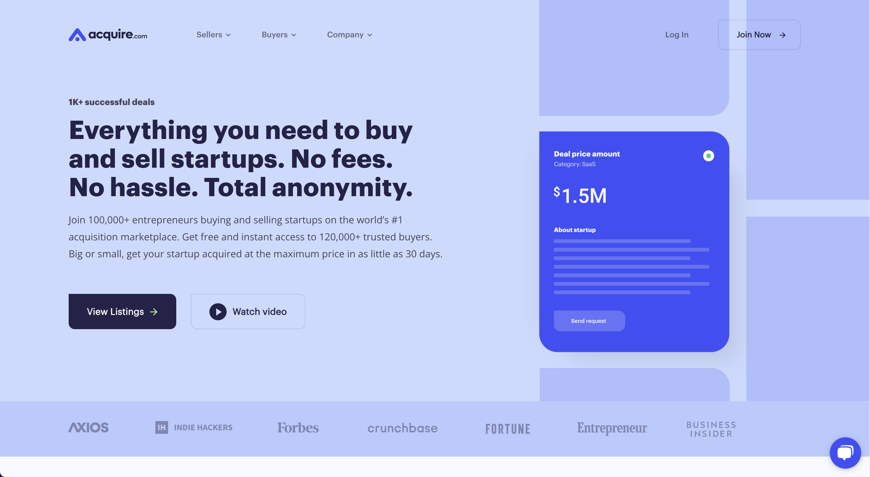 They’re a startup acquisition marketplace that links up sellers of young businesses with over 120,000 screened buyers.